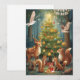C'est une carte de vacances plate. Le dos est vierge. Le devant est une image générée par IA d'animaux des bois célébrant les fêtes autour d'un arbre décoré. Dans le coin se trouve une bannière souhaitant "Bonne Année".