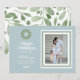 Célébrez la saison des fêtes avec ces élégantes cartes dotées d'accents de verdure bleus et aquarellés. Ce design présente un monogramme personnalisé dans une couronne verte aquarellée avec la possibilité d'ajouter votre message personnel et votre photo.