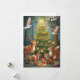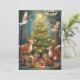 Ceci est une carte de vacances plate. Le dos est vierge. Le devant est une image générée par l'IA d'animaux de la forêt célébrant les vacances autour d'un arbre décoré. Dans le coin se trouve une bannière souhaitant "Bonne Année".