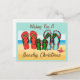 Une carte de vœux de Noël de saison tropicale avec des tongs.
