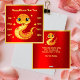 Envoyez vos salutations avec notre carte de voeux pour le Nouvel An Chinois Céleste montrant un adorable serpent orange orné d'éléments culturels chinois. Des deux côtés du serpent se trouve une liste d'années de serpents par incréments de douze. Vous pouvez également envoyer cette carte à ceux qui sont nés dans l'Année du serpent, car leur année de naissance est mentionnée sur la carte. Le texte à l'arrière est également personnalisable pour rendre vos voeux de nouvelle année plus personnalisables et chaleureux.
