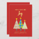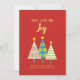 Envoyez une joie festive avec cette carte de Noël moderne avec un trio de sapins fantaisistes sur un arrière - plan rouge audacieux. Sur le devant, on peut lire "Paix, Amour et Joie" dans une police dorée, avec espace pour personnaliser le nom de famille et l'année suivante. Un choix parfait pour les familles qui veulent une façon élégante et chaleureuse d'envoyer des voeux chauds cette saison de vacances. Qu'il s'agisse d'envoyer à des amis, des voisins ou des collègues, ce design unique se distingue par sa couleur et sa personnalité. Entièrement personnalisable : modifiez le texte, les polices et le message intérieur pour en faire le vôtre.