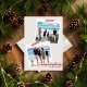 Une carte de vacances minimaliste et moderne adaptée à tous. La carte comporte deux emplacements photo carrés décalés "scotchés" avec du ruban washi rayé diagonal rouge et blanc sur un fond taupe neutre. Un motif rayé diagonal rouge et blanc festif remplit l'arrière.