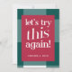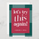 Fun et rustique "essayons de nouveau" carte de vacances de nouvelle année avec typographie audacieuse et plaid festif avec les couleurs rouge, vert et blanc de Noël.