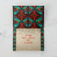 Personnalisez cette carte de Noël Southwest Kokopelli "unique" ! Elle représente un Kokopelli jouant de la flûte avec des notes de musique sur un fond de Noël beige avec des flocons de neige, entouré de bordures turquoise, orange et noires et les mots édifiants..."Paix sur Terre" !