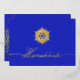 Simple et spectaculaire, cette carte à feuille a l'Etoile de David superposée sur un flocon de neige solitaire sur le devant avec flux "Hanoukka" en script de vacances. Le verso a un accueil, et votre signature. L'arrière - plan a des flocons de neige plus uniques, qui s'estompent autour des bords.