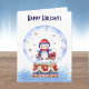 Des voeux de vacances joyeuses, de mignons manchots bleus et blancs, des cadeaux emballés et de la neige étoilée dans un globe de neige décoratif sont présentés sur cette carte de saison de vacances 4"x5.6". Les éléments de correspondance minimaux sont à l'intérieur et à l'arrière. La typographie rétro et l'écriture élégante est d'un bleu foncé. Modifiez facilement le complément ou supprimez du texte à l'avant, à l'intérieur et à l'arrière pour le rendre vôtre en utilisant le Modèle fourni. L'enveloppe blanche est incluse ou cochez "none" pour un prix réduit. Également disponible en 5"x7" taille. Pour plus d'informations, reportez-vous à la section "À propos de ce produit" à côté.