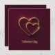 Deux cœurs qui se chevauchent avec un contour doré sur un fond rouge foncé, avec un effet de douce lueur. Le texte « Saint-Valentin » est centré sous les cœurs.