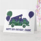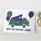 Créez une carte d'anniversaire personnalisée. Cette carte de vœux pliée est prête à être personnalisée avec votre propre message sur le devant et à l'intérieur et comporte une illustration d'un ventilateur de camping-car avec une tente popup sur le toit et est illustrée pour ressembler à une nuit au clair de lune dans la forêt avec une pleine lune dans un ciel indigo rempli d'étoiles brillant sur un bosquet de conifères.