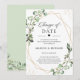 Modèle d'annonce de report d'événement - Carte de feuilles d'eucalyptus géométrique de changement de date.