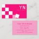 Carte De Visite à damiers rose et blanc avec Monogramme Moderne