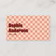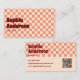 Faites une déclaration audacieuse avec ce carte de visite d'inspiration rétro avec un rouge classique et un motif à damiers pêche. La police vintage et la disposition minimaliste créent un mélange parfait de plaisir et de professionnalisme. Une section de code QR intégrée permet d'orienter facilement les clients ou les abonnés vers votre site Web ou votre portefeuille. Personnalisez le nom, le titre, les coordonnées et le code QR pour correspondre à votre identité.