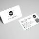 Modern custom company logo generic basic contemporary editable business card template with elegant typography script and QR code in simple black and white.