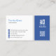 Cette simple conception de carte de visite professionnel de gestion d'administrateur a une colonne bleue sur la droite contenant le logo et le nom de votre société en haut et votre code QR en bas. Votre nom, titre et détails apparaissent à gauche sur un arrière - plan blanc. Parfait pour les thèmes minimes, simples, d'affaires, de finance, d'administration, de marketing, de gestion, sérieux, simples. Le design générique le rend adapté à toute entreprise ou industrie.