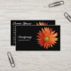 Un carte de visite avec un motif de photo marguerite africaine. Nom d'entreprise etc sur le devant avec d'autres détails sur le verso avec le même motif et le même style.