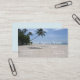 Le paradis tropical. Palmier sur une plage de sable vide, avec l'océan et les vagues au-delà. Carte de visite de l'agence de voyage