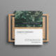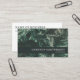Carte de visite avec une photo muette d'aiguilles de sapin en turquoise foncé.