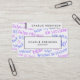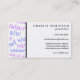 Une conception moderne comportant des expressions allemandes de débutant dans différentes nuances de pourpre sur un arrière - plan blanc. Au milieu, il y a un boîtier blanc pour votre nom et profession, ou une raison sociale et un tagline. Ce serait parfait pour un professeur de langue allemande, un interpretor, un traducteur ou un tuteur privé. Sur le dos, la conception est répétée avec plus d'espace pour vos détails.
