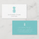 Le design moderne et chic présente une illustration d'ananas tropical turquoise sur un arrière - plan blanc immaculé. Ajoutez deux lignes de texte personnalisé à l'avant, et customisez le dos avec vos coordonnées complètes en blanc sur un arrière - plan bleu oeuf de robin assorti, avec une illustration plus petite d'ananas blanc. Parfait pour les professionnels du design d'intérieur ou de l'hôtellerie.