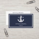 Ancrage moderne, nautique, marin, capitaine de bateau, cartes de visite bleu marine.