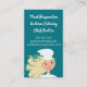Femme blonde moderne mignonne utilisant le casquette et la veste d'un chef, courant avec un plat de plateau ou de nourriture de dôme sur ce carte de visite pour le chef personnel ou privé, le traiteur ou la restauration, la livraison de repas, les cours de cuisine ou d'autres affaires de nourriture ou culinaires.