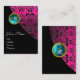 Carte De Visite AQUAMARINE BLEUE DAMASK MONOGRAM, rose fuchsia