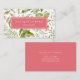 Un carte de visite élégant comporte le feuillage vert d'aquarelle avec les fleurs roses. Pour une personnalisation plus avancée de cette conception, cliquez sur svp le bouton de "personnaliser" ci-dessus !