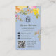 Ce charmant carte de visite à la décoration florale est décoré d'une belle aquarelle florale peinte à la main. L'avant présente un agencement époustouflant de fleurs éclatantes dans les tons rose, jaune et orange, dressées contre un arrière - plan bleu ardoise simple et élégant. Au dos, la carte conserve son thème floral avec des accents floraux délicats, offrant un espace suffisant pour votre logo, les coordonnées, les poignées de médias sociaux et un code QR pour un accès facile à votre portefeuille ou à votre liste de prix. Le design est entièrement personnalisable, vous permettant d'ajuster les couleurs pour correspondre à l'esthétique de votre marque. Cette carte est parfaite pour les créateurs floraux qui cherchent à faire une impression durable.