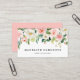 Élégants cartes de visite fleuris avec une bordure supérieure de roses roses vertes et des fleurs d'aquarelle blanches au feuillage vert luxuriant. Personnalisez l'avant des cartes de visite floraux en ajoutant votre nom/nom d'entreprise et titre d'emploi. Le carte de visite chic s'inverse pour afficher en noir les détails de votre entreprise contre un arrière - plan rose vif. Le carte de visite idéal pour les wedding planners, les organisateurs d'événements, fleuristes, stylistes, blogueurs, etc !