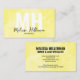 Carte De Visite Aquarelle moderne Monogramme jaune