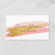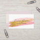 Carte de visite arrière - plan simple couleur blanche avec trait d'eau main en rose et or avec police manuscrite élégante. Le verso contient des informations personnelles dans une police élégante et décorative avec arrière - plan blush sur rectangle transparent.