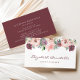 Cette élégante carte de visite moderne dispose d'un bouquet floral aquarelle en bordeaux et rose vif. Personnalisez-le avec votre nom en écriture manuscrite bordeaux et informations commerciales en sans serif font. Le verso de la carte comporte du texte blanc sur un arrière - plan bordeaux.