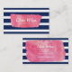 Carte de visite chic rose aquarelle bleu rayures. Cette carte est idéale pour différentes professions, notamment les professionnels de la création : maquillage, coiffeurs, blogueurs de beauté, stylistes de mode, Beauticiens, etc. Il est facile de customiser ; vous pouvez facilement remplacer le texte de l'espace réservé pour ajouter vos propres informations. Pour plus d'options comme changer la police et sa taille, cliquez sur le bouton "Customiser". *Veuillez noter que le filigrane Zazzle qui apparaît dans l'aperçu du zoom n'apparaîtra pas sur le produit imprimé final © Rosewood et Citrus