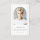 Cartes de visite de couleur modernes, verticaux, blancs ou personnalisés avec votre photo en forme d'arc, nom et titre sur le devant, avec une fine bordure gris clair le long du bord de la carte. Champs de modèle personnalisables pour vos coordonnées, les médias sociaux et le code QR au verso. Vous pouvez modifier les couleurs des arrière - plans et des polices, déplacer et redimensionner les éléments à l'aide de l'outil de conception.