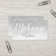 Carte de visite argenté élégant moderne élégant à la mode de maquilleur de marbre de parties scintillantes avec les icônes sociales ! (Facebook, Instagram, gazouillement)