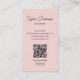 Faites une impression durable avec ce Carte de visite d'artiste moderne à ongles rose. Il offre de l'espace pour votre photo personnalisée, une typographie de script élégante, un code QR pour la réservation ou le portefeuille, et des icônes de médias sociaux remplaçables pour correspondre à votre marque. Parfait pour créer un look chic et professionnel dont les clients se souviendront ! Entièrement personnalisable et idéal pour les techs à ongles, coiffeurs, maquilleurs et professionnels de la beauté.