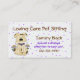 Carte de visite mignon animal de compagnie fait dans un lavande pâle et vert, sur blanc, pois motif, avec des images de pays d'un chien doux tenant un os dans sa bouche. Le texte en lavande et marron est entièrement personnalisable pour répondre à vos besoins. Une façon amusante de faire de la publicité pour votre entreprise.