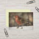 Cette carte de collection d'artiste comporte un pinson de maison masculin se tenant dans la neige. Il a beau a le plumage rouge sur sa tête et sein. La neige s'accroche à son bec. L'arrière - plan lumineux est aux nuances de l'or, du gris, de l'orange et du blanc.