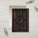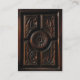 Cette carte d'artiste est décorée avec l'image d'une belle sculpture artistique en bois dans les tons brun, or, acajou et noir. Une image centrale abstraite de fleurs circulaires a des pétales rayonnant sur un cercle sculpté qui est entouré de quatre sections. Chaque section a des sculptures abstraites de feuilles.