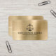 Present a professional image with this minimalist black and gold business card featuring rounded corners. The gold faux brushed metal background contrasts with the black justice scales logo and the black text to highlight your name, contact information and other details. A QR code on the back takes clients to your website.