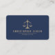 Carte De Visite Attorney QR Code Navy Blue Gold Scales Rounded