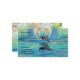 2 dauphins nageant dans l'océan près d'une belle augmentation de couleurs et de l'eau avec 2 planètes, une lune et un soleil coloré. Couleurs roses, bleues, d'aqua, jaunes et vertes dans l'eau et le ciel.
