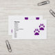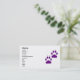 Carte de visite avec les pattes pourpres de chiot. Laissez une impression durable tout en annonçant vos affaires.