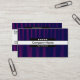 Un modèle élégant et attrayant pour carte de visite/profil avec un design étiquette de groupe central. Détails de l'entreprise sur l'avant avec le nom et les coordonnées sur l'arrière où le thème est répété mais avec une bande plus large.