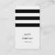 Design carte de visite moderne et chic dans un format vertical unique, avec trois larges bandes noires sur un arrière - plan blanc, avec votre nom et nom d'entreprise ou titre dans un mélange attrayant de minuscules serif et de caractères casquette modernes. Ajoutez vos coordonnées complètes à l'arrière. Convient à toute profession; exemple pour les professions designs d'intérieur.