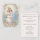 This exquisite invitation features a tender watercolor vignette of the Blessed Virgin Mary holding the Christ Child, surrounded by soft florals and cherubic angels in a luminous vintage style. The serene composition draws the eye upward in quiet reverence, making it especially fitting for the sacred occasion of Holy Baptism.