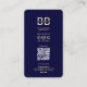 Vous recherchez un carte de visite personnalisable pour votre barbershop ? Notre design moderne Barber Midnight Blue Gold Barber's Pole Barbershop est l'ajout parfait à votre établissement! Dispose d'un design classique de poteaux de barbier avec un éclairage lumineux et attrayant qui attirent certainement les clients sur un arrière - plan de feuille d'or. La carte est entièrement personnalisable, vous permettant d'ajouter votre propre texte pour promouvoir vos services ou offres spéciales en scannant le code QR.