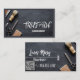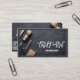 Ce design présente des photos d'outils de barbier de commerce sur un arrière - plan en pierre. Le texte blanc avant et arrière s'affiche contre l'arrière - plan gris. Customisez avec votre nom de magasin, nom, QR à votre URL personnelle (vous tapez dans l'URL et Zazzle fait le reste!) et numéro de téléphone. Également disponible en forme de carte de visite carré.