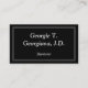 Cette conception carte de visite traditionnelle et minimale comprend un arrière - plan noir et une bordure à deux lignes avec une ligne pointillée entre les deux. Il peut être utilisé par un avocat, un avocat, un avocat ou un avocat. Le nom, la profession et les coordonnées peuvent être personnalisés.