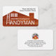La couverture présente une conception créative en bois sur le toit incorporant une échelle qui agit comme la lettre "H" pour le mot "Handyman". Juste au-dessus se trouve votre nom prestigieux avec les coordonnées dans le coin supérieur droit. Sur la feuille, dans une couverture blanche, un logo "scie électrique-toit" que vous pouvez utiliser est en haut. Il est suivi par votre nom prestigieux, les coordonnées et une option de slogan pour faire connaître vos services. Une grande carte pour le bricoleur, le bâtiment et les entrepreneurs généraux à utiliser.